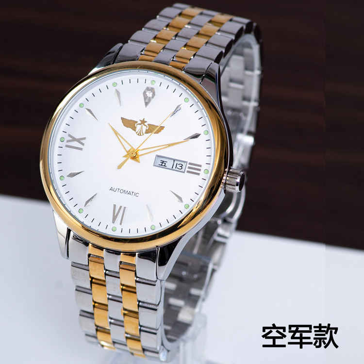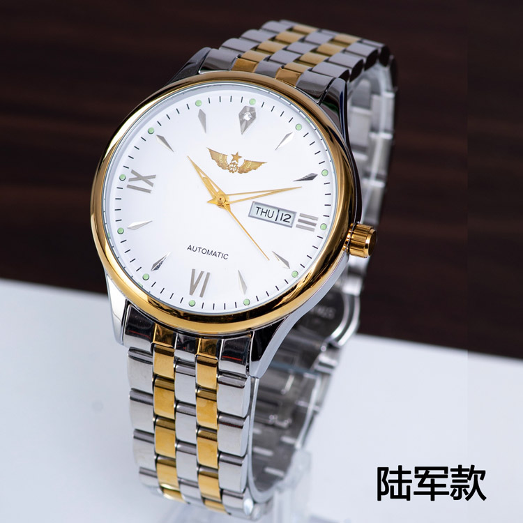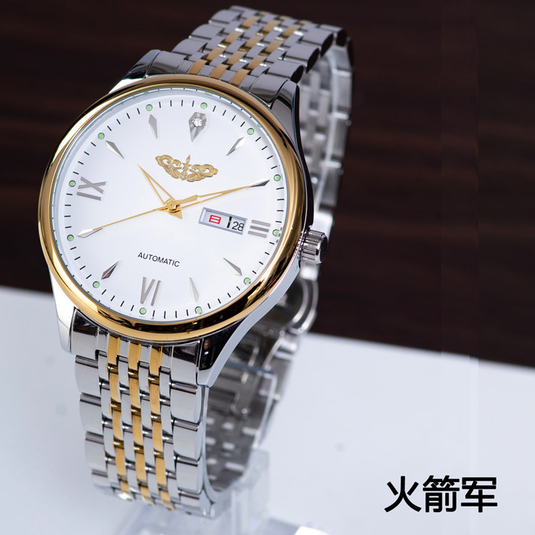 男士商务时尚不锈钢表带手表 1121白五角星机械表全精钢表壳表带