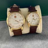 男女情侣表棕色小牛皮表带8058党徽不忘初心金色表盘框情侣款