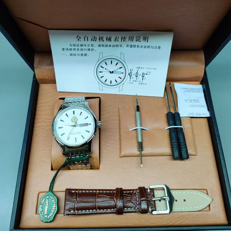 中国警察机械表 不锈钢实心钢带 进口机械机芯 蓝宝石镜面机芯表