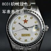 商祺正品军表 中国八一机械军表 8031机械军表 银色钢带表